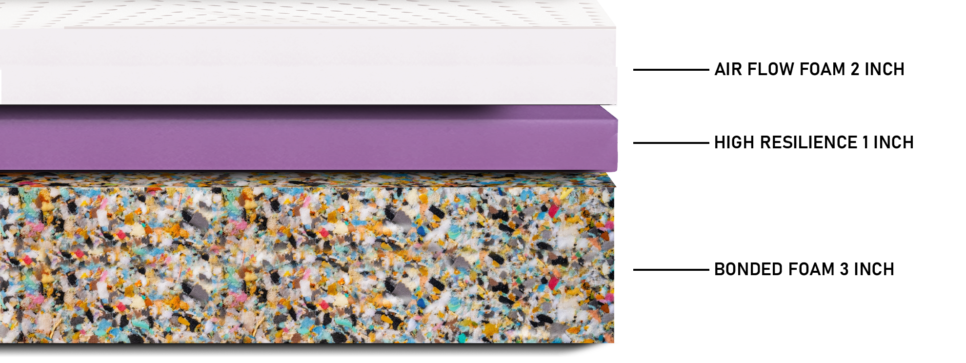 Air Flow Foam Mattress with Bonded Foam and High Resilience Foam it’s a three-layered mattress make 6” thickness. that combines ultimate comfort with super bouncy feel for supports multi sleep position. It’s a Single sided mattress – For those who like the luxurious feel.