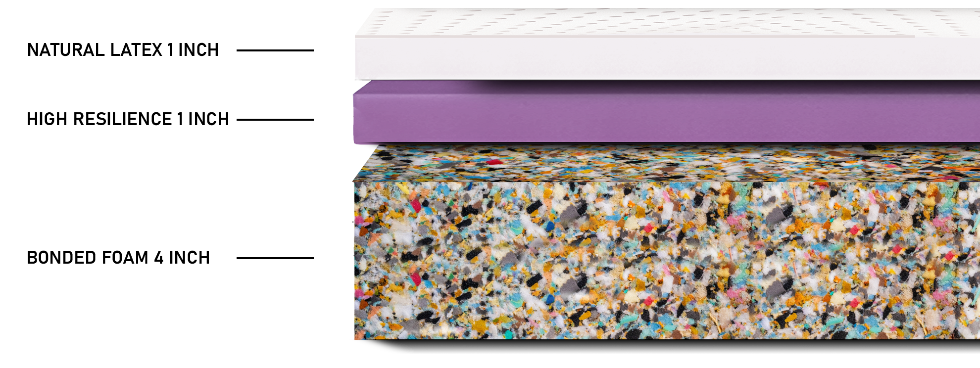 Natural Latex hypo-allergenic Mattress with Bonded Foam and High Resilience Foam it’s a three-layered mattress make 6” thickness. that combines ultimate comfort. It’s a two- sided mattress – one side soft and the other side hard.